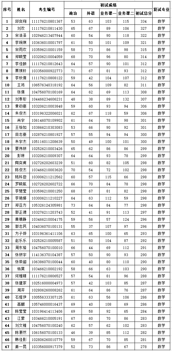 BBIN 2026年研究生第一轮调剂复试名单(数学)