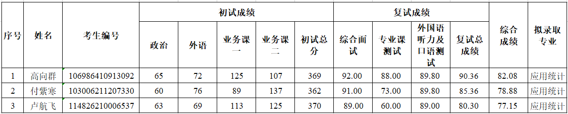 备注:复试成绩=综合面试×50%+专业课测试×30%+外语听力及口语面试×20%