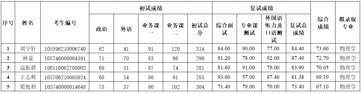 备注:复试成绩=综合面试×50%+专业课测试×30%+外语听力及口语面试×20%