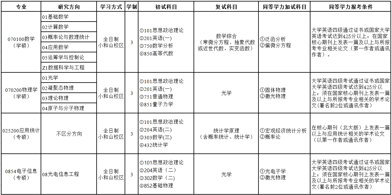 BBIN 2025年硕士研究生数学、物理学复试考试大纲