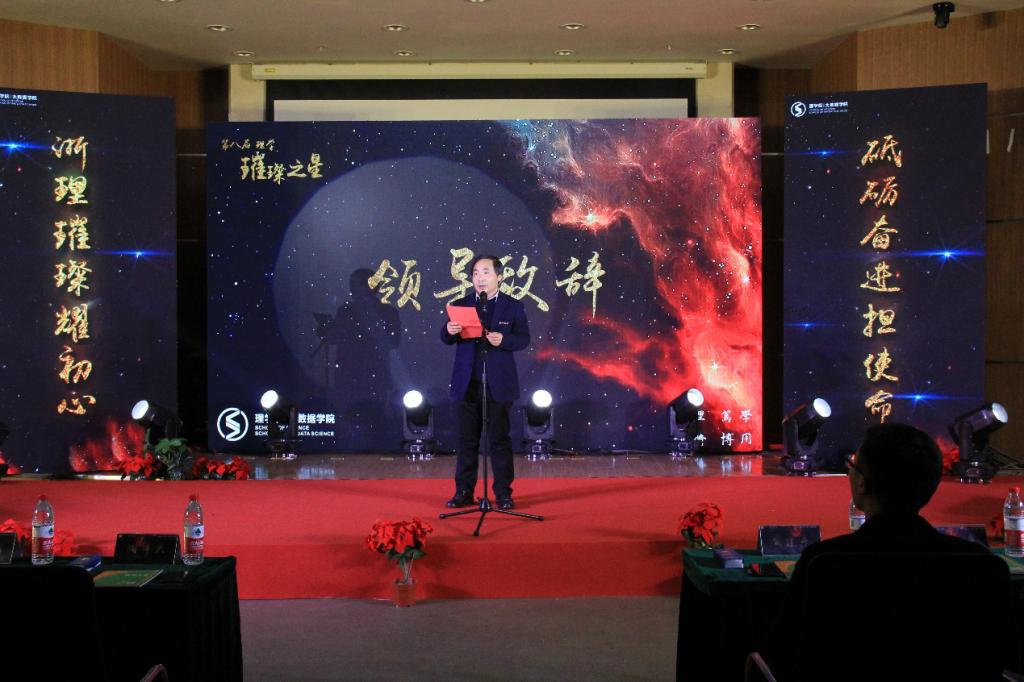 向莅临本次典礼的各位来宾、老师、同学们表示了热烈欢迎,向即将接受表彰的先进个人和优秀集体表达了衷心的祝贺。陶院长在致辞中指出每年的“理学·璀璨之星”颁奖典礼既是一场表彰会,也是一场宣讲会,更是一场动员会。目的就在于,通过表彰唱响明理、笃学主旋律,弘扬慎修、博用正能量,以身边榜样的力量,引领广大理学学子为着理想不断追求,不忘初心奋力前进,勇做无愧时代、无悔青春的开拓者、奋进者和奉献者!借此机会,陶院长谈了以下几点想法与大家共勉:一、要永葆初心、多添鸿鹄志;二、要主动对标、多练真本领;三、要牢记使命、多怀报国志。