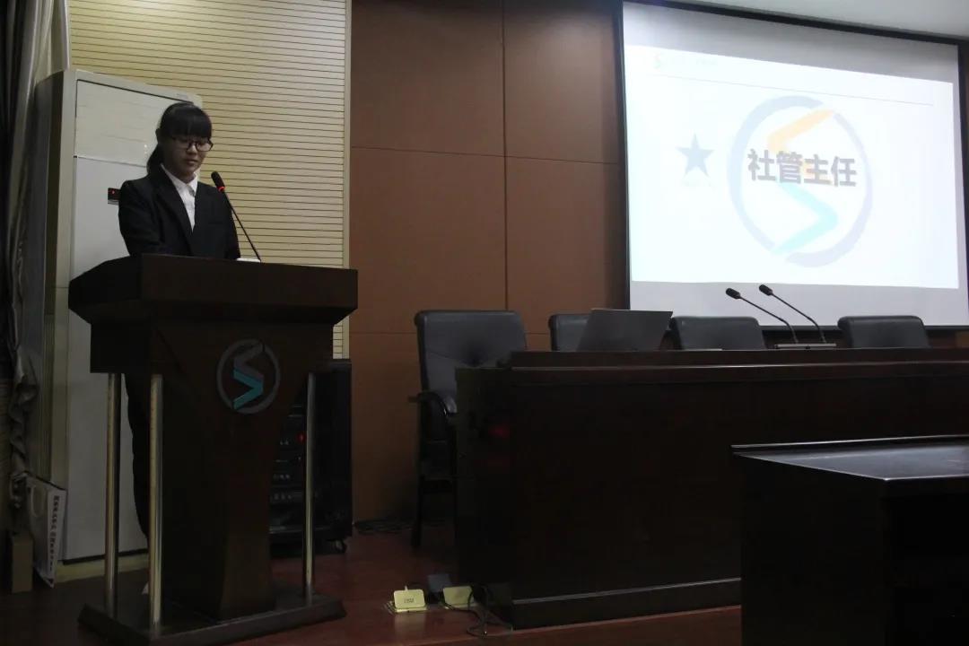首先,团委书记来雪琦对新成员表示欢迎,并寄予美好祝愿。来雪琦在发言中就上一年学生会的工作进行了阶段性总结,她在肯定各部门取得成绩的同时,提出新的要求,期望大家可以拥有奉献、大局、团队和进取这四个意识,希望在学生会工作的这一年时光会成为最美好的回忆。