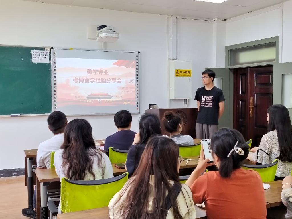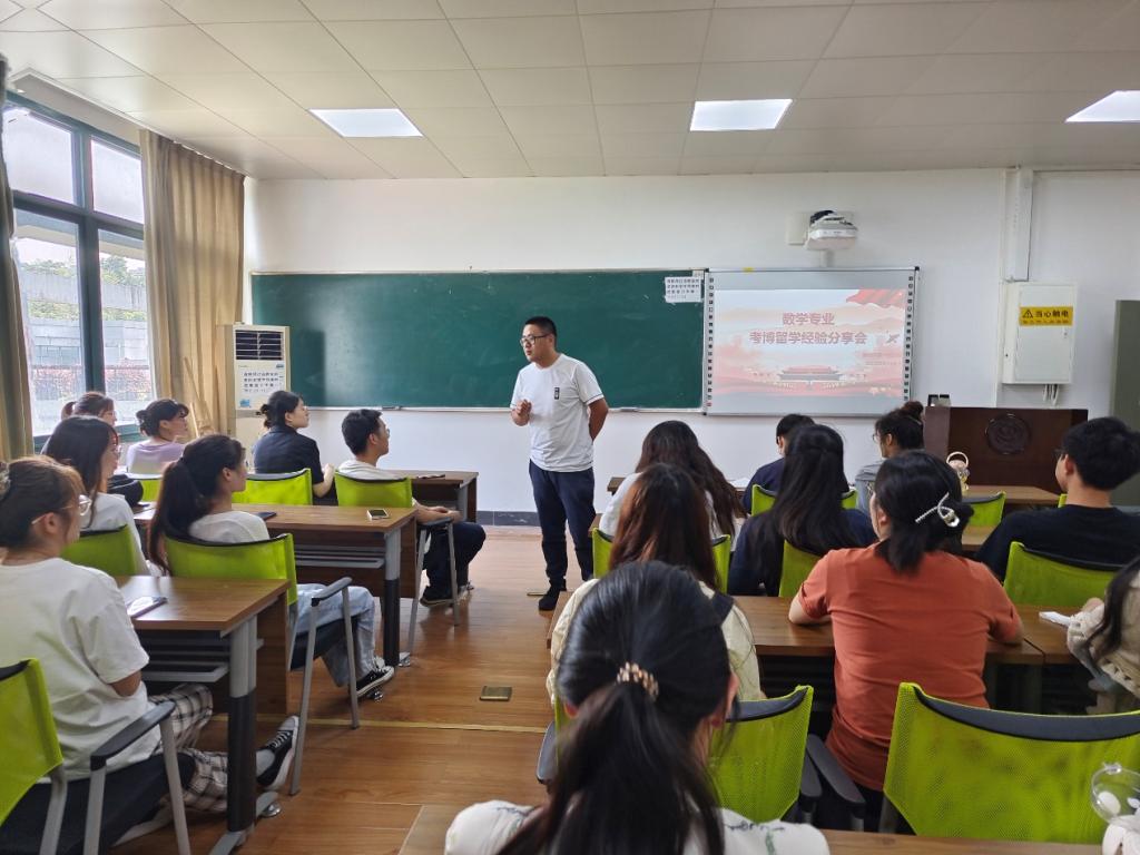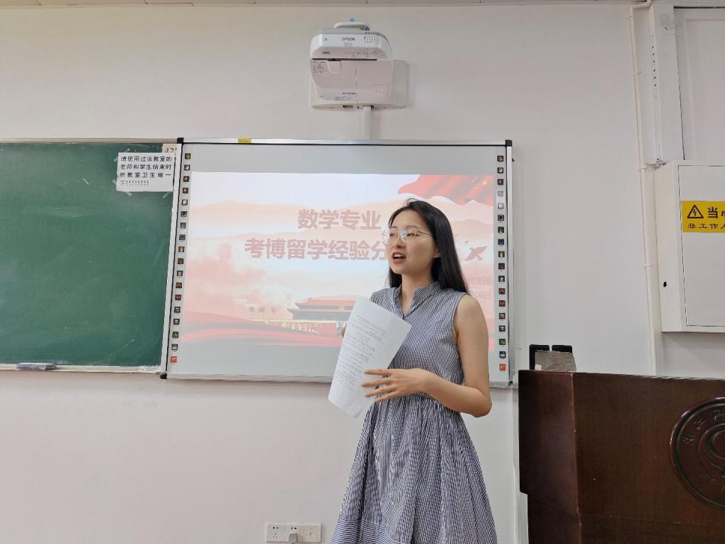 研究生第一党支部在A4-311召开数学专业考博留学经验分享会,参与本次活动的有支部书记陈建军,三位毕业生党员王佳蕙、周智慧、张倩格、研究生第一党支部党员和数学专业研究生。在本次活动中,周智慧、王佳蕙、张倩格三位毕业生党员依次介绍了自己的考博或实习留学申请经验。