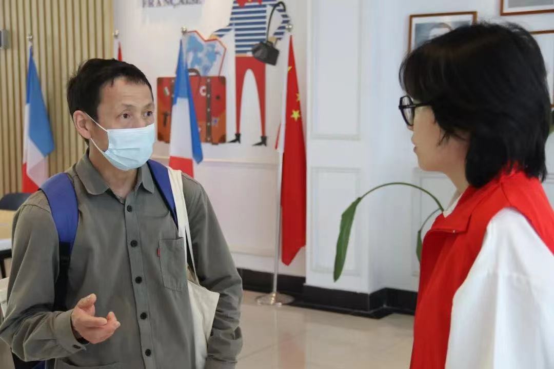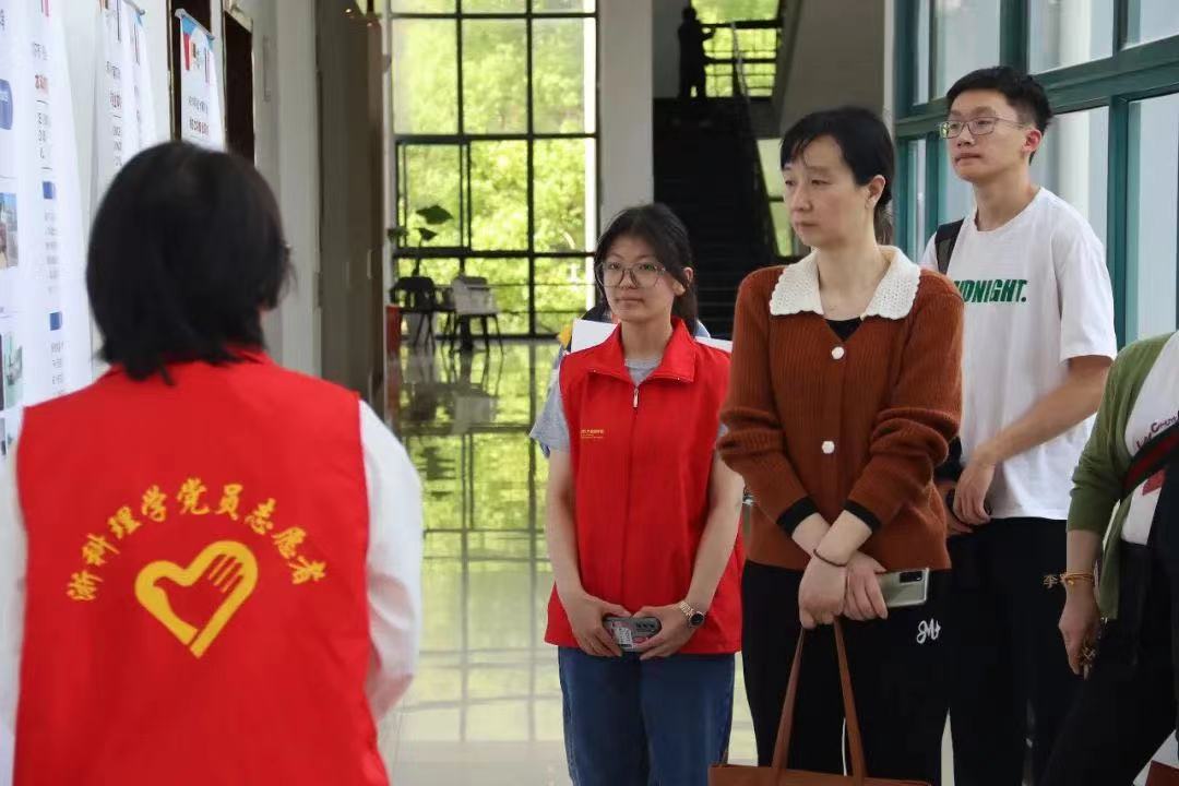 志愿者在现场为参观者引路介绍。