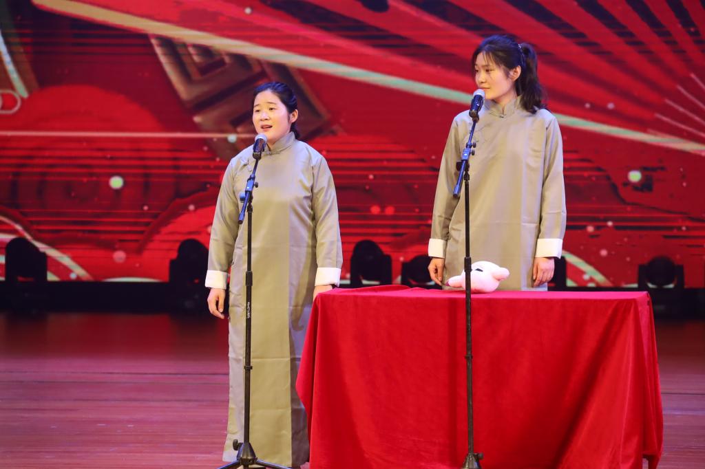 学子不仅在学习科研上有所成就,课业有余也注重培养自身的爱好。陈岩、李慧慧为大家带来了相声《通话膨胀》。