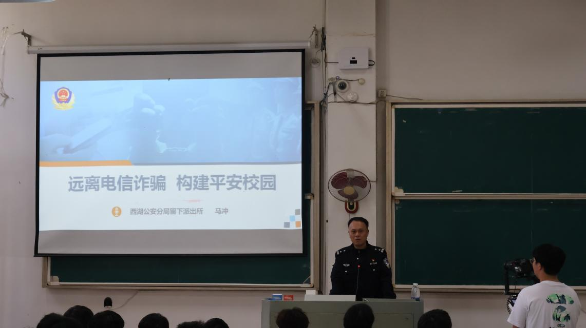 特邀请西湖公安分局留下派出所马冲警官为同学们开展了一场“远离电信诈骗,构建平安校园”的专题讲座,BBIN