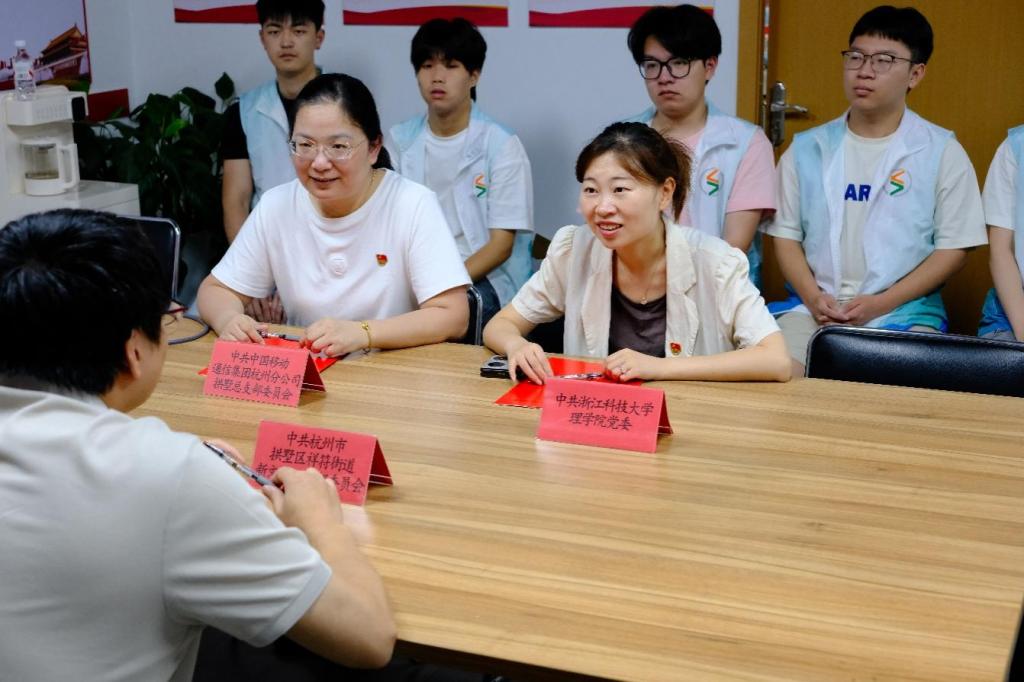 党委副书记沈艳婷与杭州市拱墅区祥符街道新文社区党支部书记沈权、中国移动通信集团拱墅分公司祥和分局支局长王见利,签署党建联建书,旨在加强家校社企多方合力,为BBIN