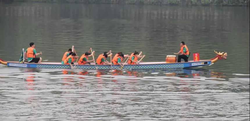 的参赛队员们划桨快速有力,动作整齐划一,这归功于他们这段时间以来的艰苦训练。前半段赛程三只参赛队伍不分上下,中途我们和另一支参赛队伍的龙舟相距太近,眼看着就要产生碰撞,为了保障双方的安全,本着友谊第一比赛第二的原则,舵手马上改变了航线,虽然队员们奋力拼搏,但已经落下了太多距离,BBIN