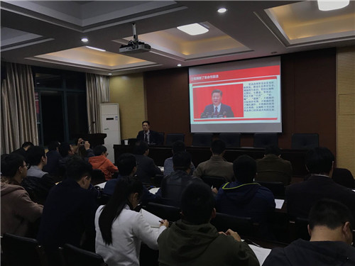 师生党员作了一场内容充实、见解深刻的十九大精神宣讲报告。学习过程中师生党员认真学习、积极记录,现场秩序井然,李书记的精彩报告博得与会人员的热烈掌声。