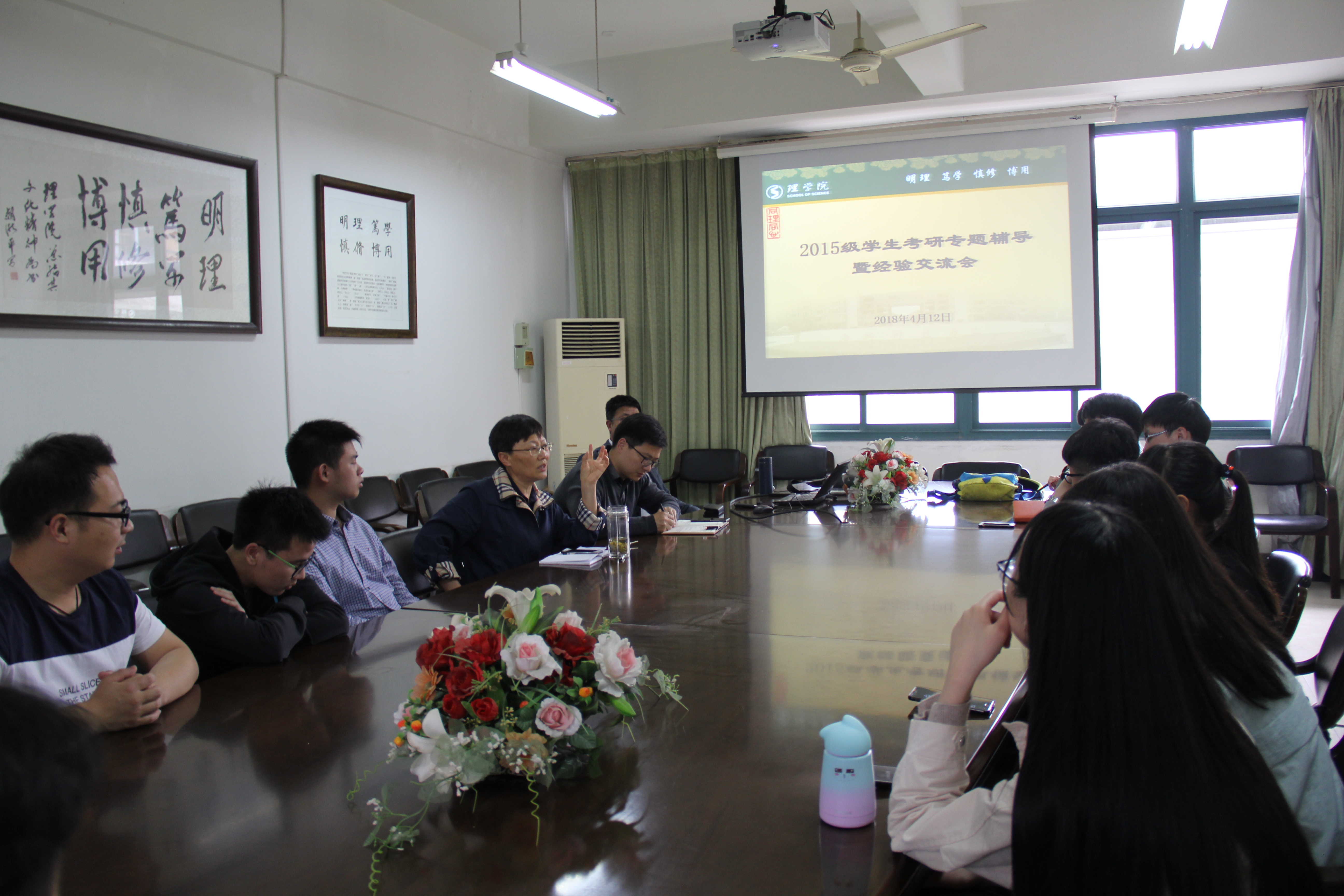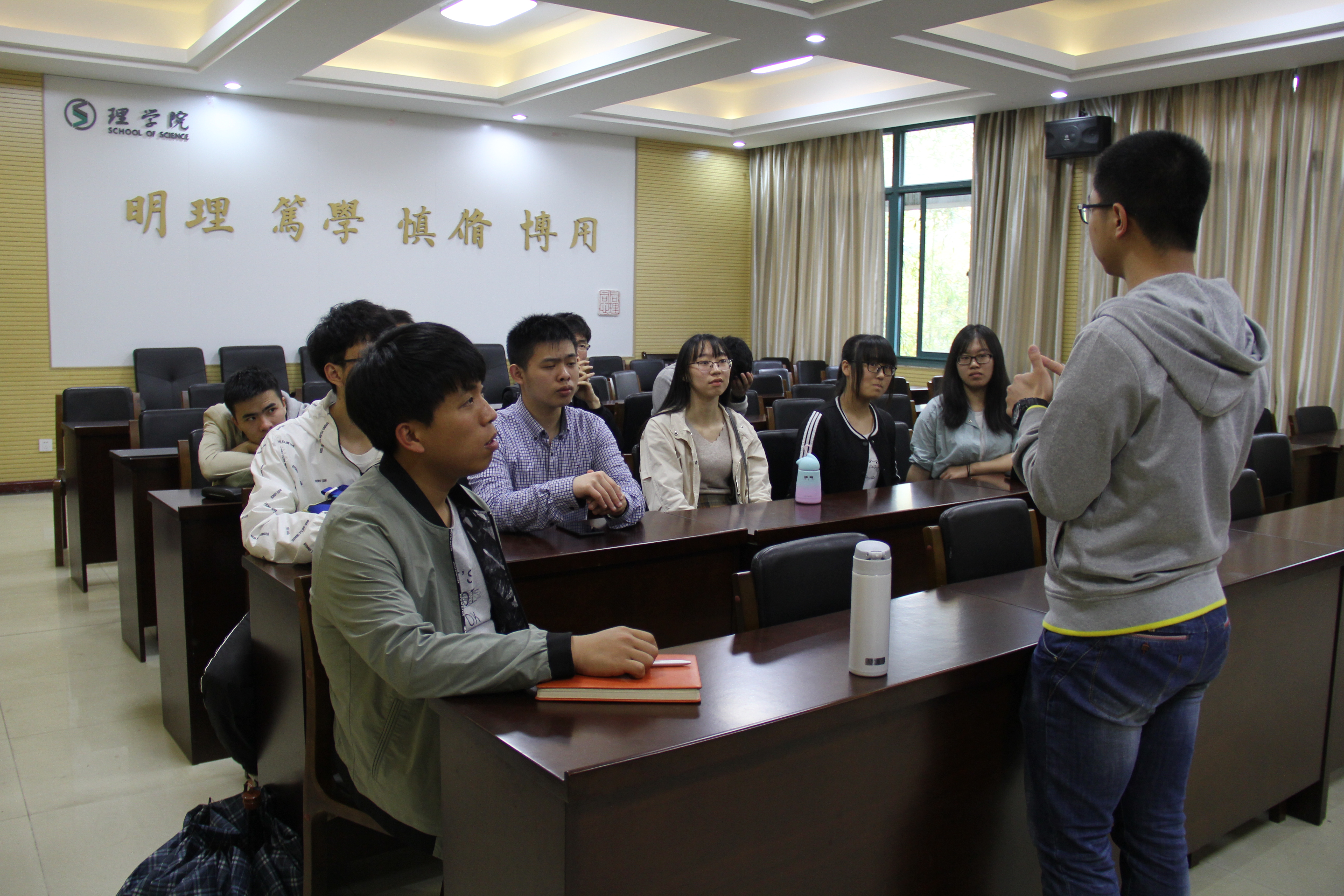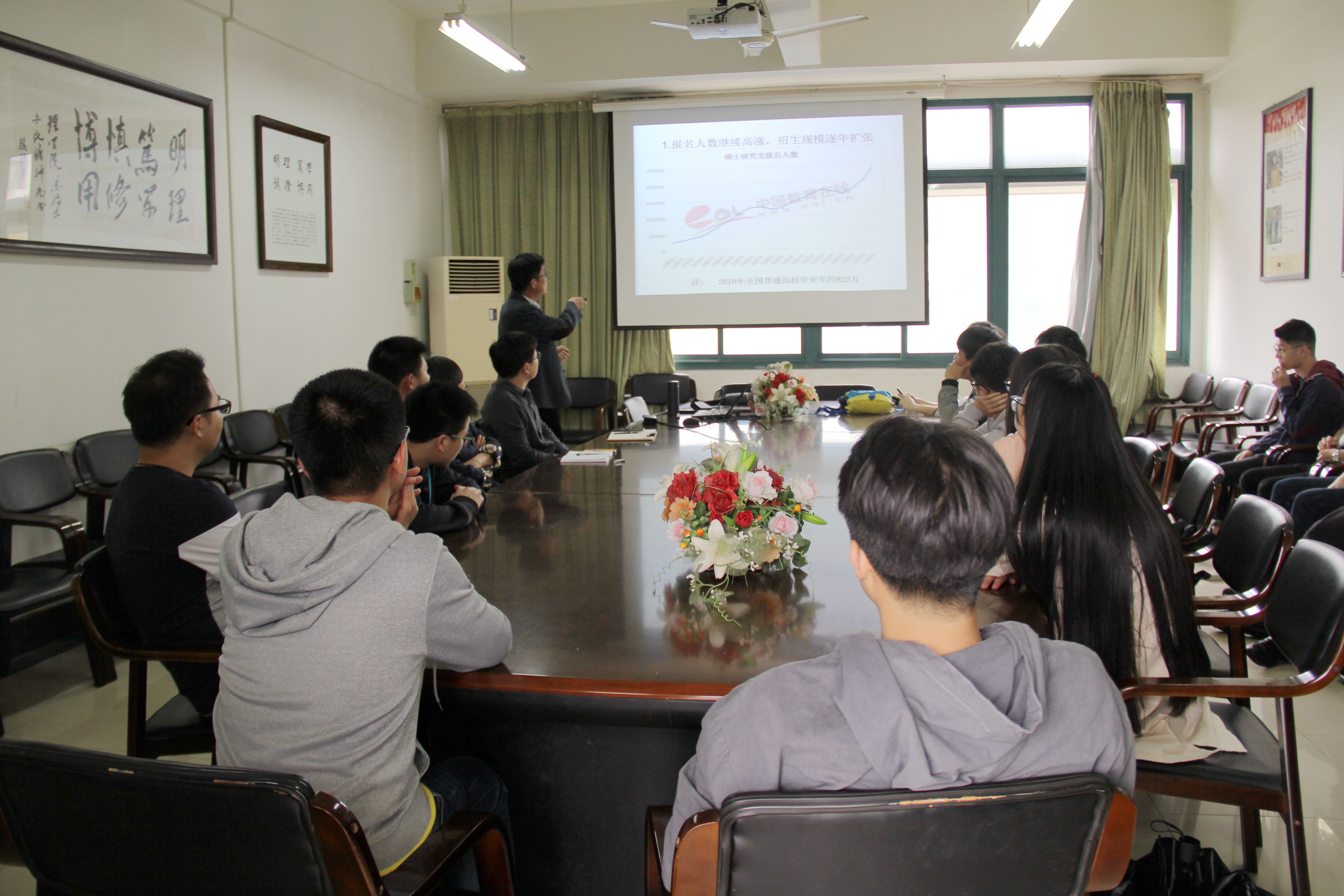 今年考取浙江大学研究生的信计142班王树一同学做交流汇报,2015级考研意向学生听取了报告。本次交流会由BBIN