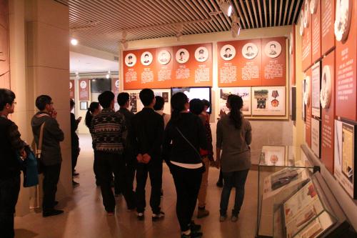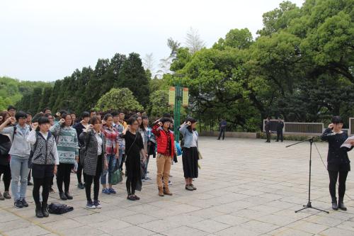 在革命烈士纪念碑前,学生党员代表向革命烈士敬献花篮。在主持人的带领下,全体学生党员在革命烈士纪念碑前面向党旗庄严宣誓。党总支副书记王杨向新老学生党员提出了组织的希望和要求。第一,要坚定理想信念,矢志不渝;第二,要知荣辱,树立社会主义核心价值观;第三,要发挥模范作用,营造良好班风、学风、校风。并强调了学生党员的责任意识,在工作、学习和社会活动中应起模范带头作用,应按时向组织汇报思想和工作情况,努力做一名合格的共产党员。新党员代表戴唯在仪式上发言,再次表达了对党的忠诚,并从学习、思想、生活等各方面提出了批评与自我批评的重要性。宣誓仪式结束后,大家在讲解员的带领下参观了革命烈士纪念馆。