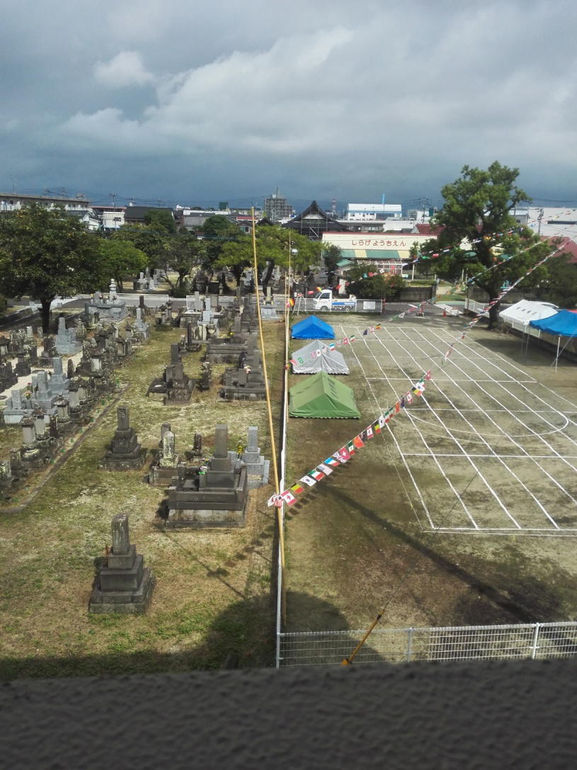 日本对坟墓不像中国那么忌讳,相反,居民区旁边有墓园是很常见的。我所在的公寓楼下面就有。而且这个墓园的旁边还有一个幼儿园,有时候可以看到小盆友们在墓园边的小操场活动。墓园,幼儿园。一个代表死亡,一个代表新生,很是有趣。