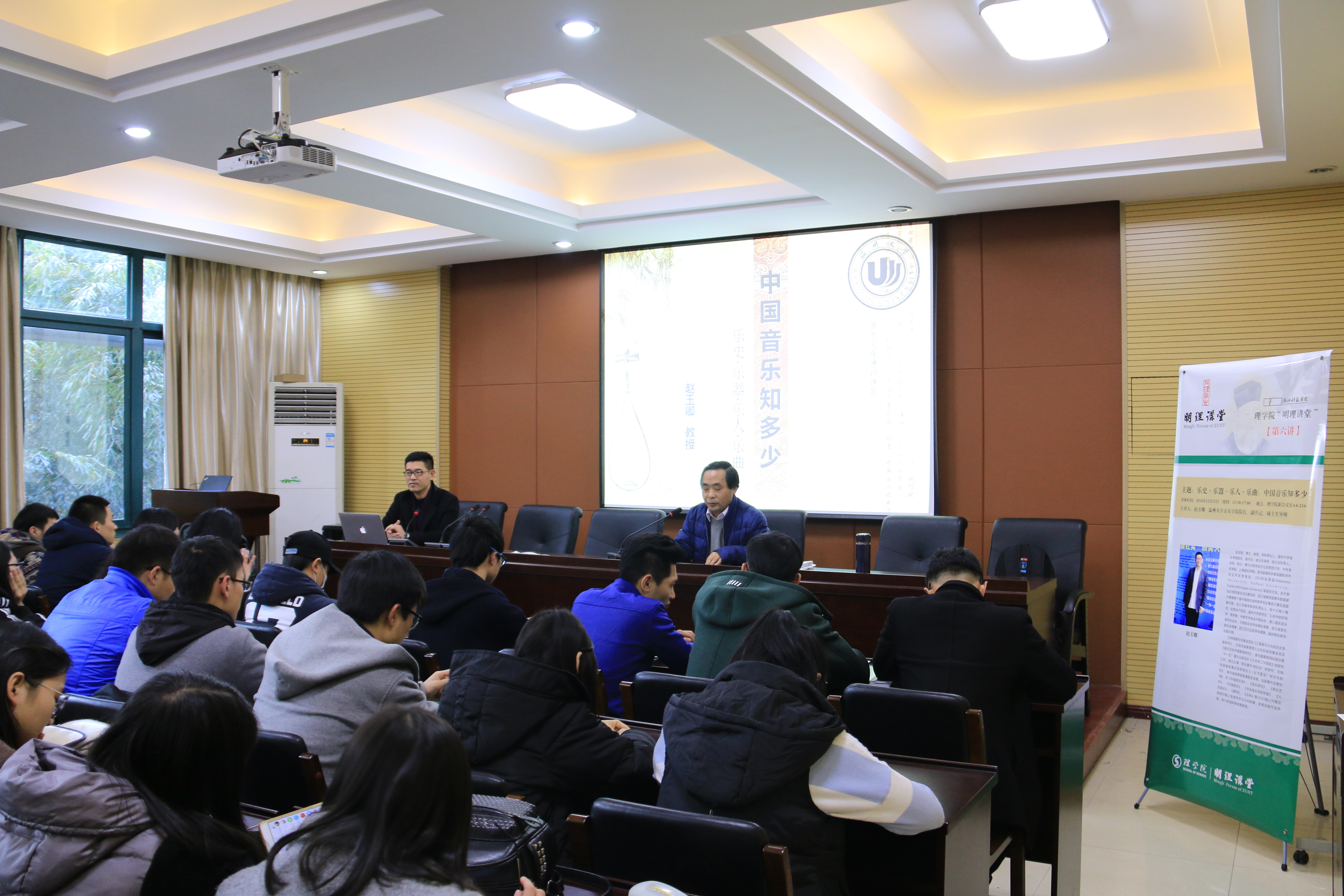 赵教授分别从音乐历史、音乐乐器和音乐地域三大方面为师生们讲述了中国音乐的相关知识。音乐历史分为上古音乐、中古音乐、近古音乐和近代音乐;乐器则分为吹、拉、弹、打四类;不同地域的音乐特色是与众不同的,每个地方都有独特的地域特色,同一首歌,在不同的地方,它的韵律、曲调都是截然不同的,这显示了中国音乐的神奇奥妙,也体现了中国文化的博大精深。