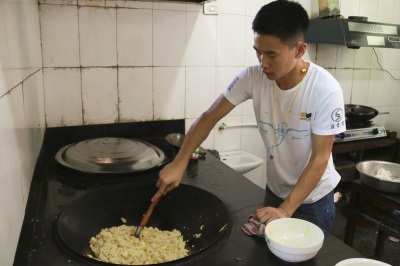 每一个深入山区的大学生团队都会遇到一个很重要的问题——自己的饭都没法吃。嘻嘻,队员中隐藏许久的大厨持“铲”上场,满满一桌的菜让人目瞪口呆。渐渐地队员们进入了各自的角色,对于此次的青田之行,我们从期望变得信心满满。还有我们辛勤的石大力老师,来回奔走终于为我们敲定了最后文艺晚会的场地——乡里的文化大礼堂。在此真心感谢万阜乡政府的支持,场地的问题解决了,大家变得更加有干劲了,加油“晴天梦”。