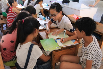 通过近几日的接触沟通,队员们了解到万阜乡的孩子们由于地区偏僻等客观因素导致许多孩子们不能够接受到应有的教育。奥数课中,根据不同年级阶段所能接受的学习难度不同,分为了几个小班,由多名老师进行小班化指导。在打破原有的体制过程中,队员们尽其所能,让每一个孩子都能在最大程度中接受新式的素质教育。