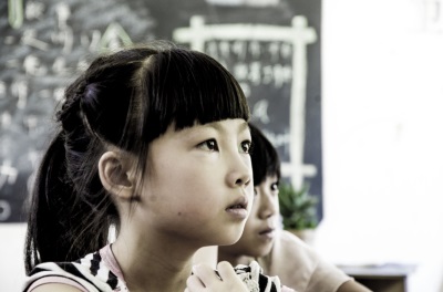 第一张:为了拍照片中的小女孩我在教室门口蹲点了两天,因为每次拍出来的姿势都不太满意。后来我注意到这是一个缺乏安全感的孩子,每次镜头对她,她都能感觉到,然后不自觉做正,于她而言似乎表现出认真学习的样子才是镜头下应有的样子。