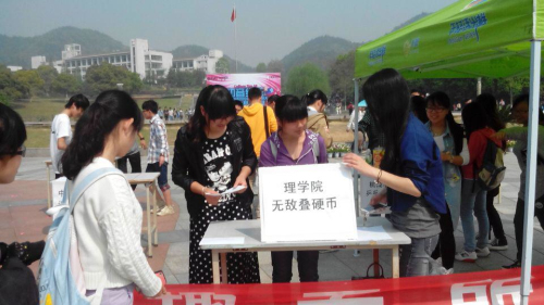 活动规则为通过六关可获得一次抽奖机会,大奖包括电影院情侣门票、温泉体验票,还有大量的饮料、糖果等参与奖品。开始没过多久,便有很多同学参与进来,他们投入到各种惊险的游戏中:考验速度的单人夹弹珠,考验平衡的双人运乒乓球,吹爆大气球等。而BBIN