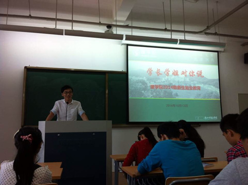 10月12日下午,一场别开生面的活动在安吉校区A教学楼举行,BBIN 的学长学姐与14级全体新生们展开了热烈的交流。BBIN 党总支书记苗红亚,副书记王杨应邀出席本次交流会。 目前在Thorlabs公司任职的郑柯学长向同学们强调了大学学好高等数学的重要性,并且嘱咐大家要利用现有的资源不断提升自己。前学生会主席翁异静学姐则主要给同学们阐述如何平衡好学生工作和学习之间的关系,这对在场有意向加入学生会等社团组织的同学有了极大的启发。最后,黄世凡学长给学弟学妹们分享了他的大学生活、创业过程和个人经历,并勉励学弟学妹们珍惜大学时光,不要虚度大学四年的光阴。