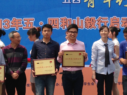 信计102班、物理102团支书杨崇轩、信计112分别荣获2012十佳团支部、十佳团支书、十佳团日活动荣誉称号。