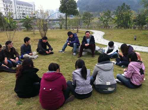 在比赛之前,大家坐在一起“促膝长谈”。尤其是最新加进来的的6名预备党员们,都积极地谈了谈自己的理想和发展方向。
