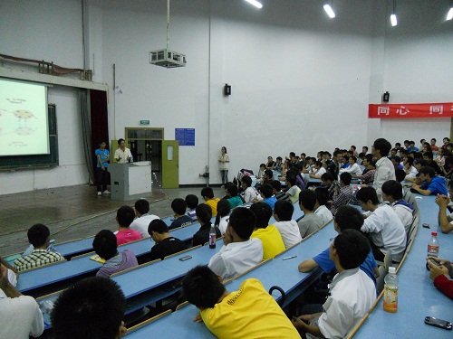 2011年数学建模协会招新动员大会在A4-122顺利召开。协会的指导老师朱勇珍老师、本届数模竞赛获奖学生和新会员们共同参加了本次大会。第一个环节,会长由两道数模入门题拉开对数模的介绍,并请会员们求解,大家展开激烈的讨论,并争相上台解题。然后会长又介绍了2011年数学建模全国赛B题,让会员们见识数模竞赛的真题,在激起大家好奇心的同时更加点燃了他们对数模的热情。