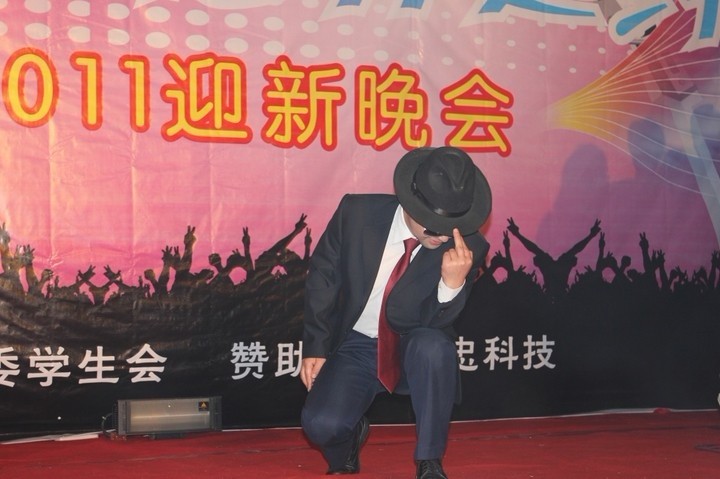 经过大家努力,一段精美的舞蹈终于完成了。舞蹈主要包括女生的柔和男生的逗。表演刚开始,女生的魅力多姿赢得台下呼声一片。男生入场时的那一刻,更惊爆全场。男女组合的精彩搭配,加上班主任的极力配合更为本次表演增加了光彩。曾经那个温文尔雅的老师突然间变成了帅气十足的许文强了。接下来舞台就是男生的了。他们伴随着熟悉的乐点,跳起了舞蹈,雷到全场,全体欢呼。在欢呼声中结束了我们的节目,我们举起“有缘来相聚,四年磨一剑”的班旗圆满的结束了我们的表演。