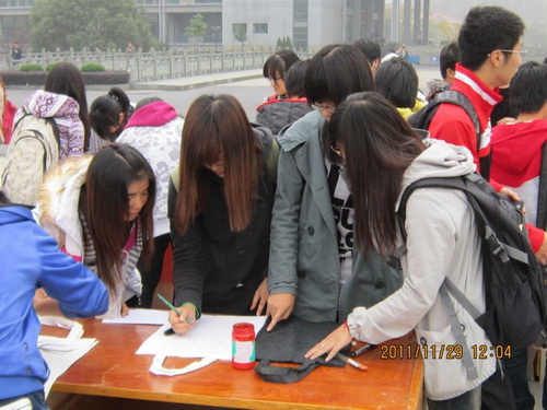 志协协办的“第二届环保袋图案设计大赛”在圆形广场如火如荼地展开了,活动的主题围绕“创意DIY,爱心FLY”开展。