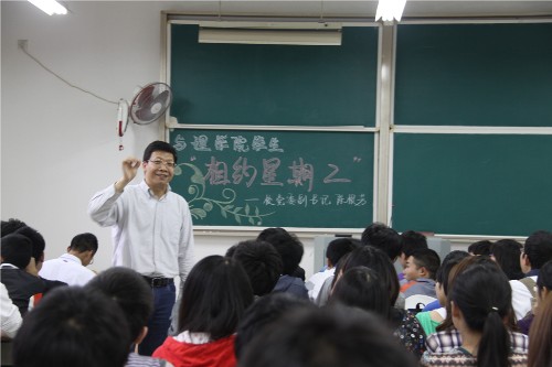 陈书记用自己传奇般的求学经历,向同学们展示了大学的学习应该如何。他告诉大家在大学有学习的无限可能性,只要找好要达到的目标,就想尽一切办法向最好的榜样靠近,能够付出汗水、泪水甚至是血水的人一定能成功!同学们提出了“大学生活究竟应该怎样过?”、“大学里专业设置是否合理?”、“如何才能找到以后适合自己的工作,生活的意义在何方”等问题,陈书记一一作答,丰富的表情和肢体动作让同学们倍感亲切。