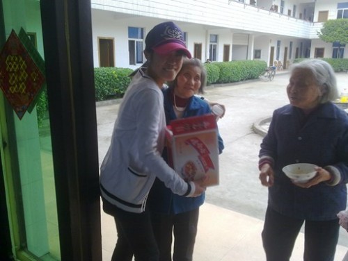 一场春雨过后,天气还是有几分燥热,路上行人纷纷,而人群中的我们,拎着大包小包,正在前往富阳中心养老院的路上。