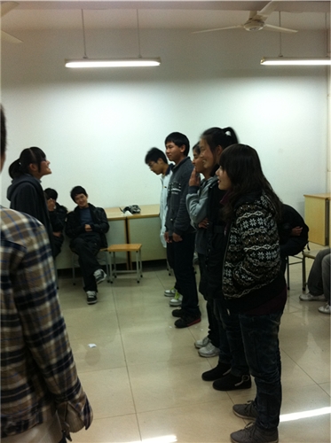 园的业余生活,营造和谐,愉悦气氛的目的,我们进行了3个游戏。游戏简单而不失乐趣,简短而不失巧妙。首先进行的是默契的考验。默契这个不可捉摸的东西,就好像一闪而逝的流星,你以为抓住了它最闪亮的地方,其实那抹亮色早已过了。接下来考验的是反应力。由一个人说出另外五个人之间的任一特征,有此特征的人需要在第一时间内反应过来,并跨出一步,反应错误或者迟钝都将接受惩罚。而说到惩罚又以歌舞为主,歌声或嘹亮,或温柔,或粗犷。。。。。。气氛顿时欢腾了起来!最后考验的是表演力。大家通过表演传达一个信息,一个人一个人地传递,看最后一个人能否翻译出这个信息。我们尝试着去了解别人的一举一动,也尝试着去了解别人的内心世界!