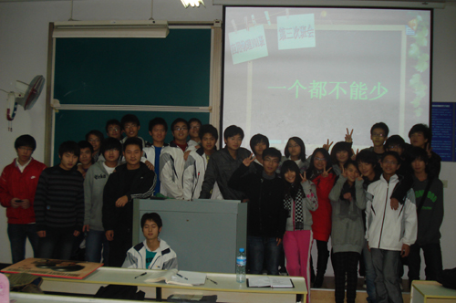 12月1日晚上六点,我们在教室A2—104举行了“一个都不能少”的主题班会。在这个满天繁星的夜晚,我们物理101班,每个同学脸上都带着笑容准时参加这次班会,当然我们班的助班也怀着兴奋的心情到达了教室。