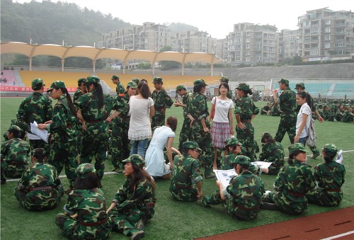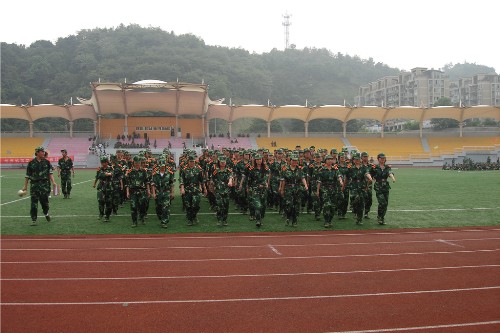 走在去体育场的路上,我们已经可以听见大一新生们军训的口号,那么嘹亮,那么振奋人心。上大学,对很多人来说,都是第一次离开家那么远。犹记得第一天接新生的时候,很多新生在家长的陪伴下,稚气未脱,父母跟在身后帮忙拖着行李箱,甚至有小女生抱着大毛绒玩具,不敢大声说话。而如今,穿着军装的他们看起来很英气,已经晒黑的脸上还挂着微笑,他们没有被太阳晒倒,他们没有被风雨吓跑。