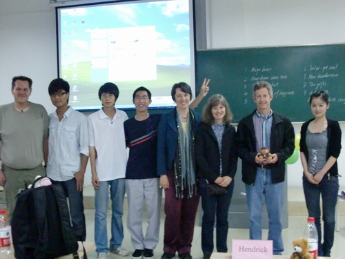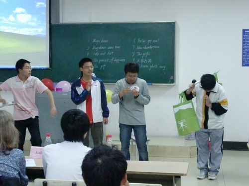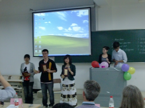 决赛于5月16日晚在A2-122举行。为了得到更为专业的点评,我们邀请了四名外教Wolfwang,Anner,Hendnish,Kathy及叶楠,严智鹏担任评委。评委老师对各组的表演做了点评,并指出表演不应只注重语言,表情和肢体的动作同等重要。最后评委们给获奖的小组颁发了奖品和证书,并拍照留念。BBIN