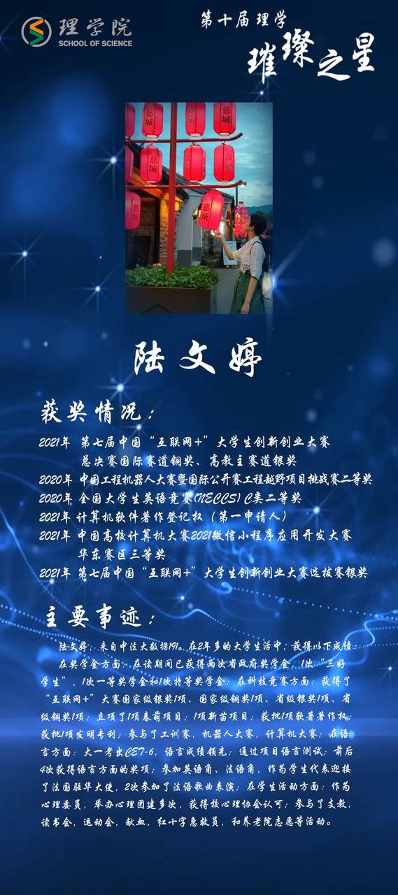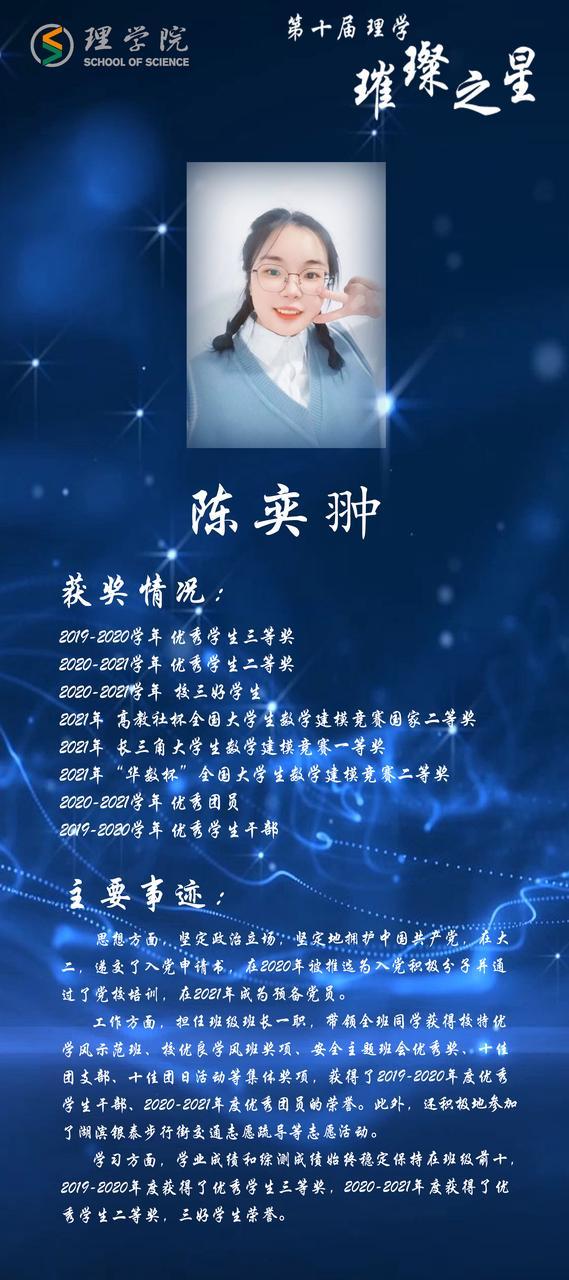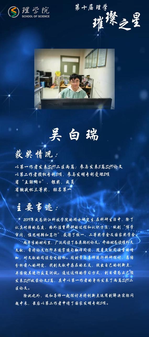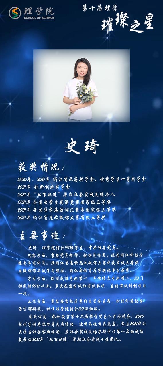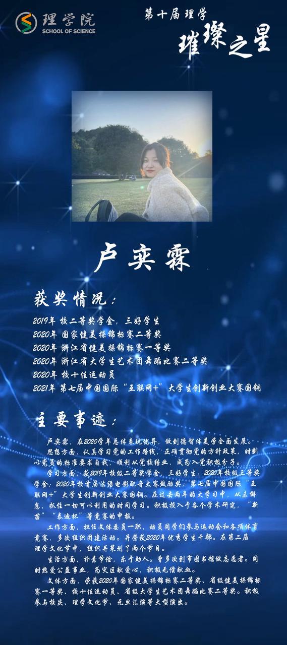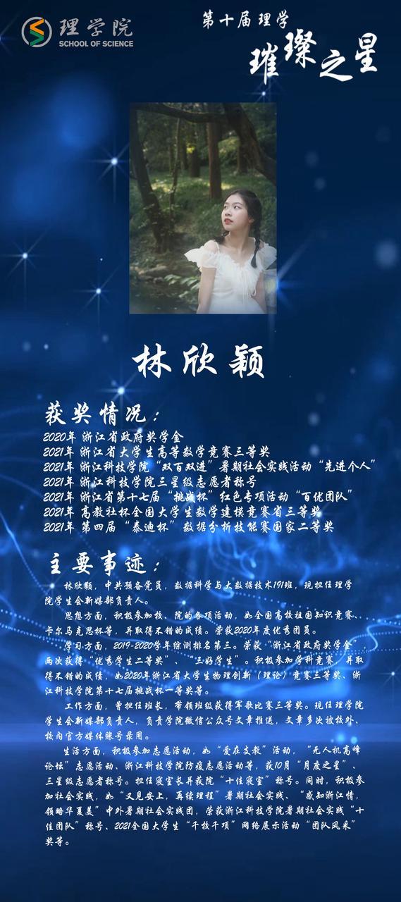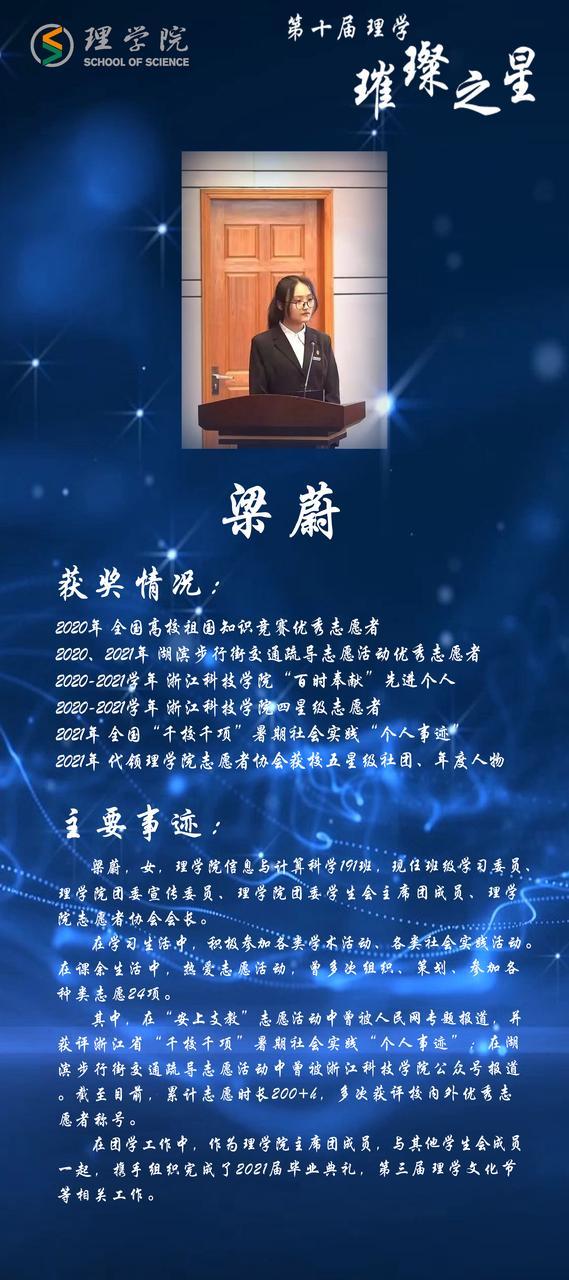 灿若繁星,汇聚理学星光;和山之畔,照亮浙理梦想。璀璨之星,自强不息,他们如夜空的明星,为我们指引前方的道路;理学学子,厚德载物,用更好的自己推动着BBIN