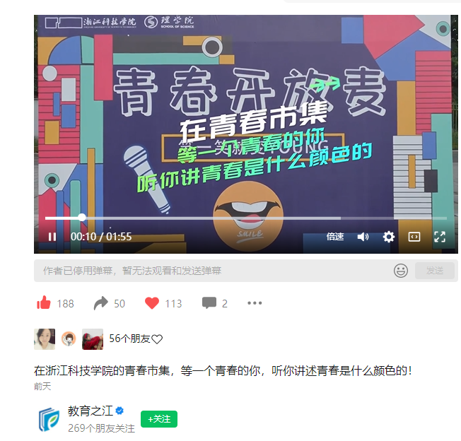 本次活动通过“开放麦”的形式,吸引全校学生广泛参与,鼓励学生走出寝室,走下网络,让学生们在脱口秀里话青春,以喜闻乐见的方式推动主题教育走深走实,活动先后在教育之江视频号、学习强国等平台上展播。(来雪琦、蔡瑞康)