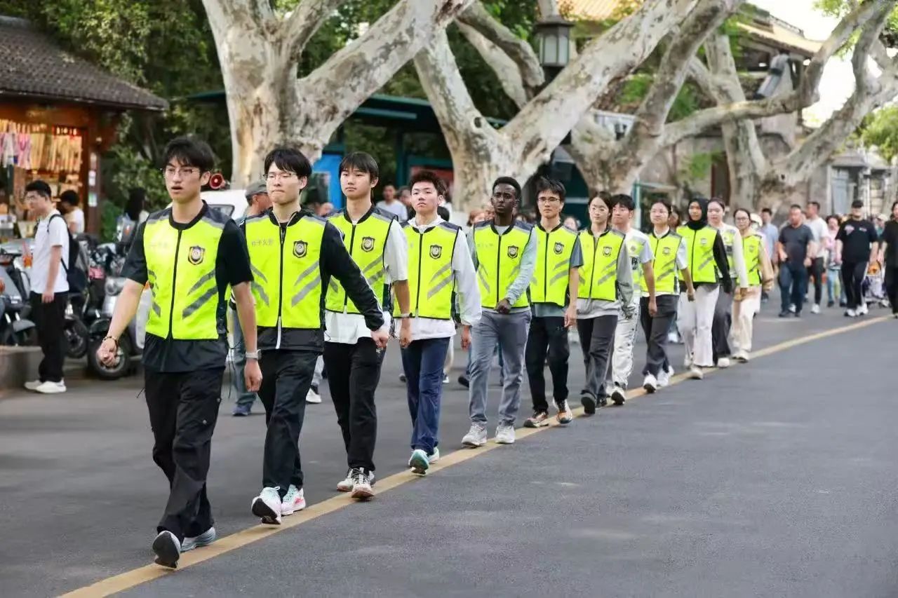 活动这两天,不少外国留学生也参与进来,努力跟着大家的节奏变换队形。虽然动作一开始不太熟练,但随着一次次认真地走位,也变得更加熟悉起来。不少路人被这道温暖的 “橙色人墙” 吸引,纷纷用手机定格这些温暖的瞬间。在大家的共同努力下,路口的交通秩序好了很多,行人通行也更加顺畅。
