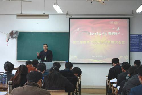12月1日,BBIN 二届三次双代会在A2-205召开。分管校领导郑友取副校长出席会议,院教代会代表参加会议,不是代表的教授列席了会议。会议由分工会主席胡月主持。