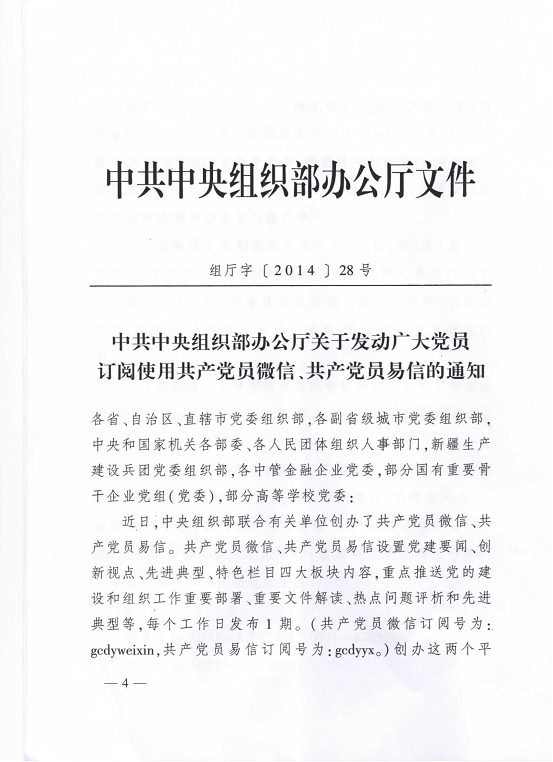 关于转发省委组织部关于做好共产党员微信、易信订阅工作的通知