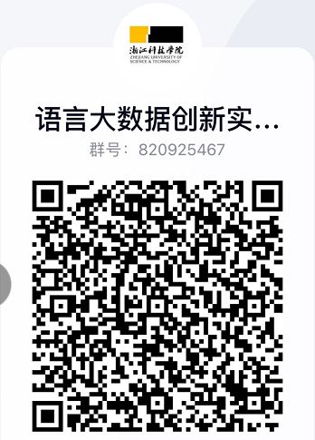 以“姓名+专业+学号”实名加QQ群“语言大数据创新实验特色班”(QQ群号820925467,或扫码)。报名截止日期:2021年10月8日。
