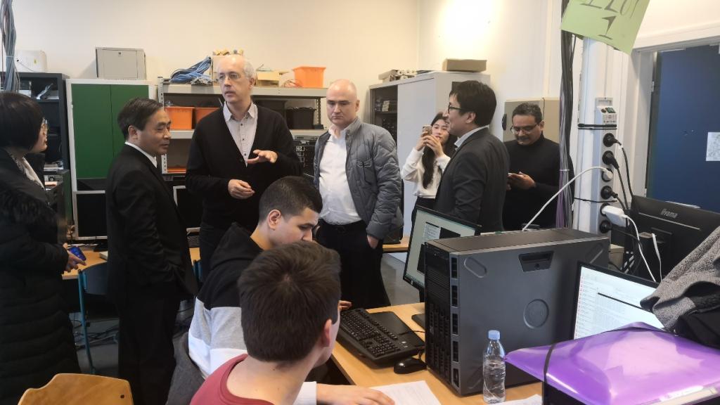 中法大数据专业合作办学项目2018年获批、2019年首届招生,中法双方合作严谨高效、不断深入。此次访问双方就大数据本科项目引进课程教学资料,法方项目式教学方法,课程教学的师资配备,以及明年暑期大二学生的游学安排进行了充分的沟通并达成共识。