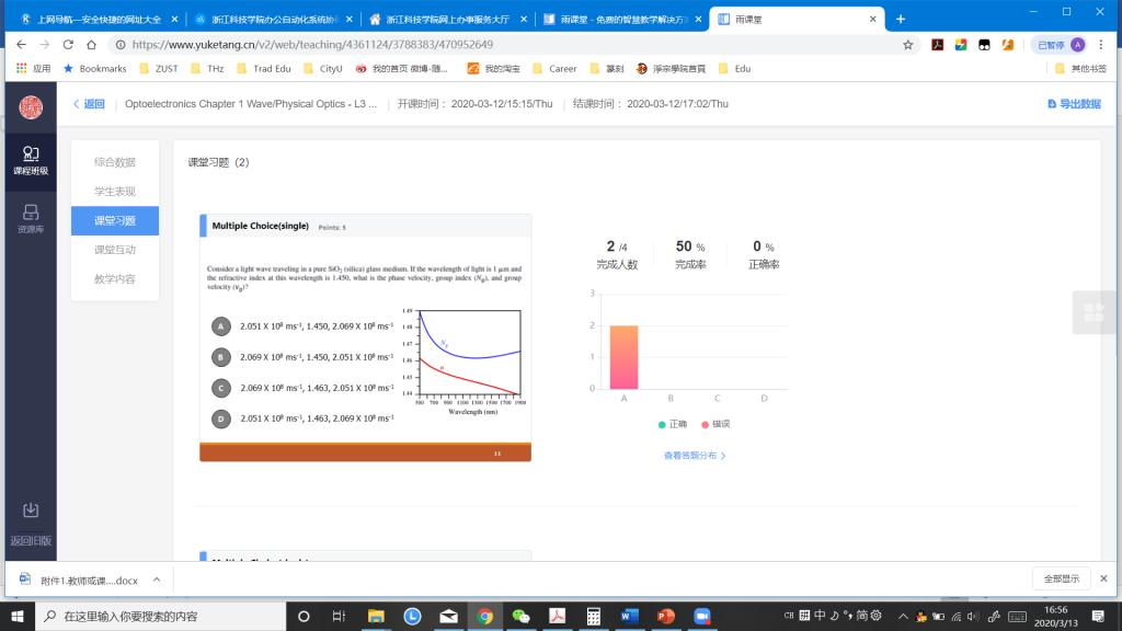 课程介绍:光电子学(Optoelectronics),本科留学生专业课,应用物理学(国际班)171,4人(1位在杭州,1位在孟加拉 时差2小时,1位在巴基斯坦 时差3小时, 1位在加纳 时差8小时)