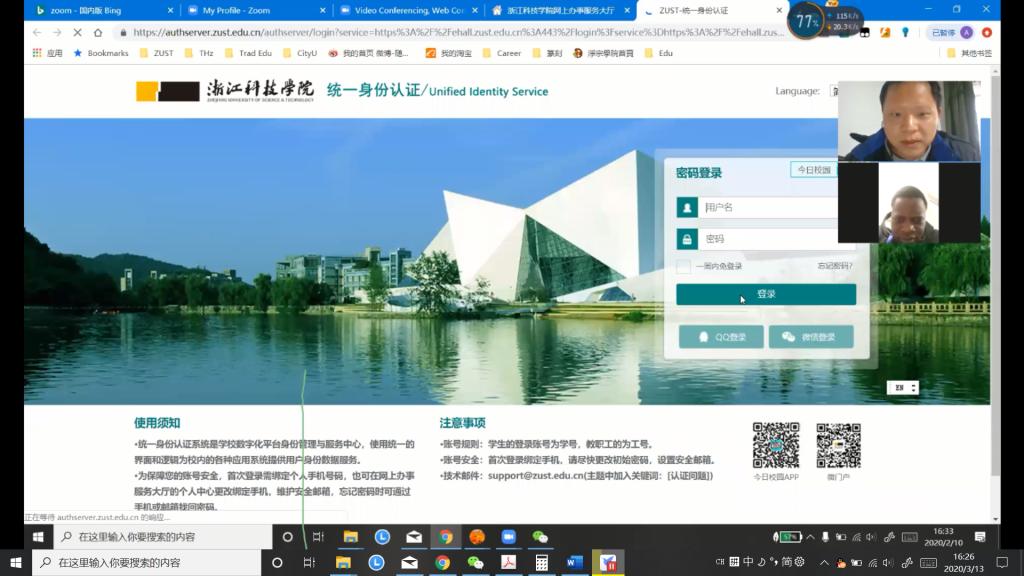 课程开始前做平台的调研(首选比较稳定的最好全英文),比较理想的是钉钉、zoom和雨课堂平台。当时2月份全国网课开始后总结开始的网课卡顿经验,考虑到大陆这边大学普遍采用QQ群视频方式而中小学多数采用钉钉,所以本人就采用相对大陆用的少的zoom平台以避免课上卡顿的几率发生。当然后来钉钉经过阿里云的几轮扩容后几乎没有卡顿情形成为了备选,QQ群视频/直播也在腾讯的扩容下运行平稳就是对于留学生新申请QQ号过程相当困难所以最后放弃了。