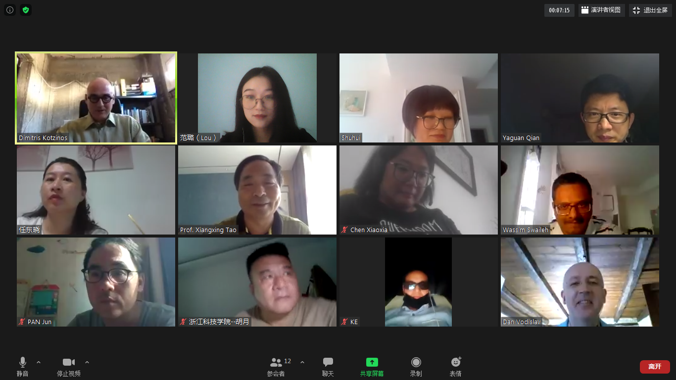 院长陶祥兴教授,副院长钱亚冠副教授,法方项目负责人Dan VODISLAV教授,法方项目负责人Dimitrios KOTZINOS教授,大数据系系主任胡月老师,大数据系副系主任任东晓老师以及中法项目的其他老师。