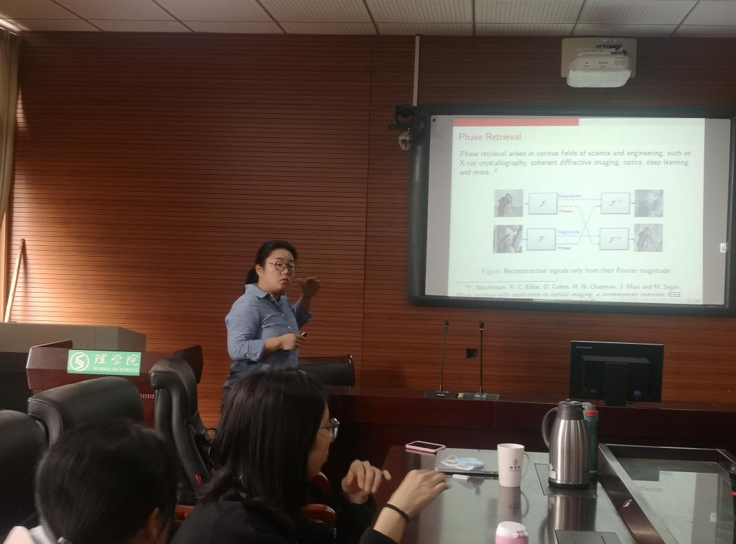 和山数学论坛,做了题为“平移不变空间中的相位恢复”的精彩学术报告。此次报告由数学系房启全副教授邀请,数学系和大数据系部分老师、研究生和部分本科生同学共同聆听了报告。
