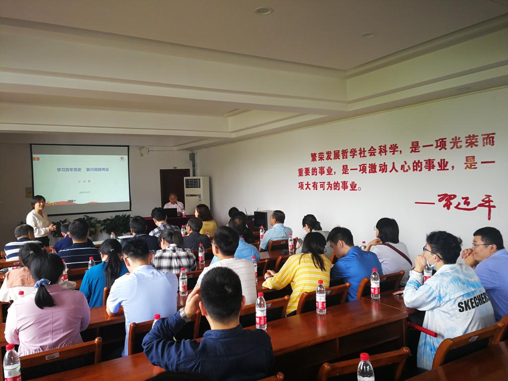 原党委副书记、“红船精神研究中心”主任吕延勤为大家上党课。与会同志在党课前一起参观了“红船精神研究中心”资料室和成果展览。吕延勤以“学习百年党史 复兴民族伟业”为主题,向在座党员介绍了“红船精神”的历史形成与理论概括、历史解读与时代价值,分别从“开天辟地”“改天换地”“翻天覆地”三个方面带领大家一起重温党的奋斗历程、铭记党的伟大成就、守好“红色根脉”。