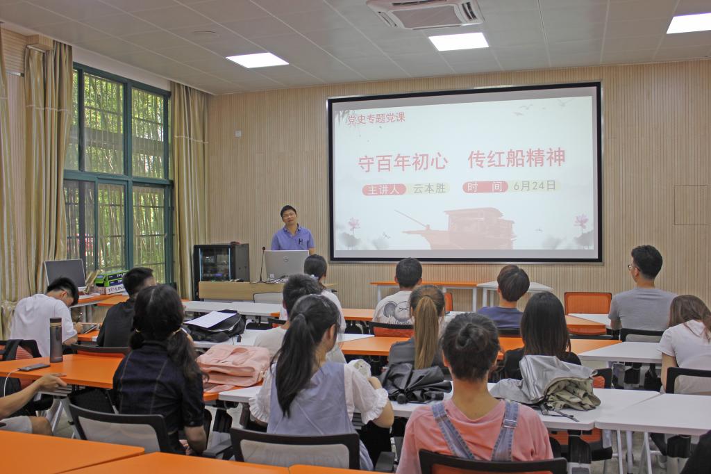 本科生第三党支部的党员上专题党课《守百年初心 传红船精神》。