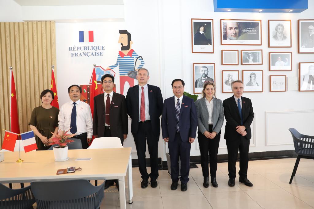 ,交流中法合作专业、参观中法文化走廊和实验室,校长赵东福、副校长单胜道、国际处等相关职能部门负责人陪同,BBIN