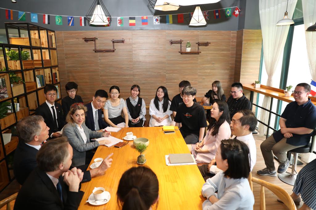 A4-218会议室围绕中法文化、学习生活工作情况等座谈交流。座谈结束后,罗梁大使一行还参观了BBIN