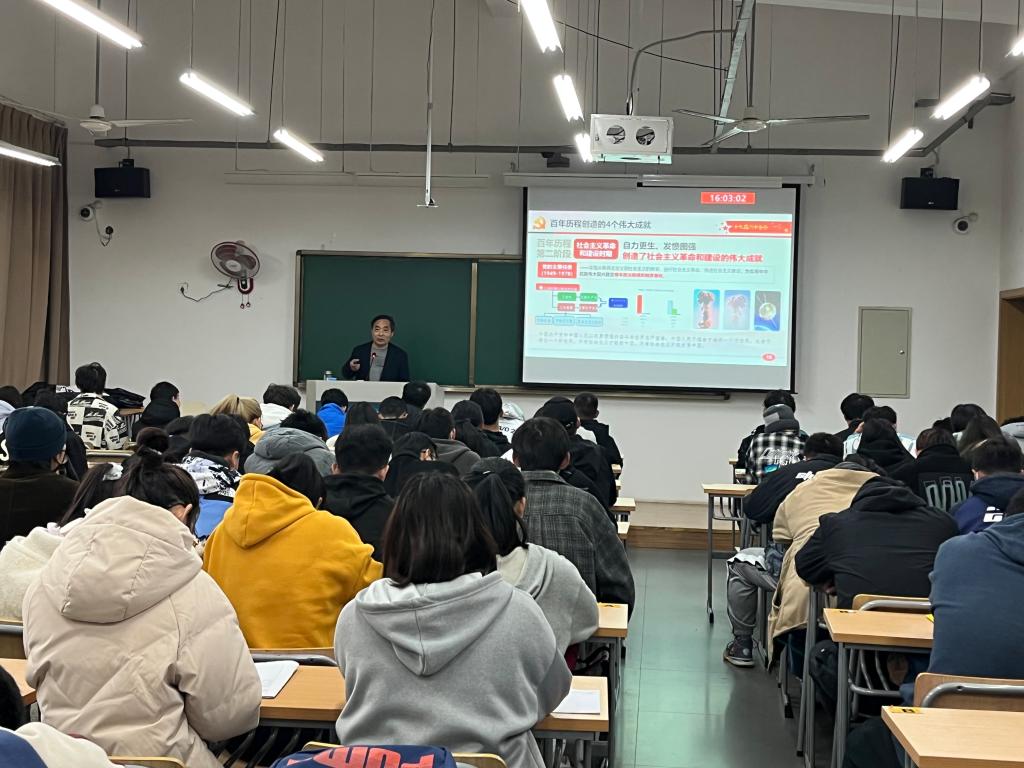 在专题报告中,陶院长对党的十九届六中全会精神进行全面宣讲和深入解读,着重宣讲《中共中央关于党的百年奋斗重大成就和历史经验的决议》,报告从总结重大成就和历史经验的3个“需要”,马克思主义中国化的3次飞跃,百年历程创造的4个伟大成就,党的十八大以来13方面的重要成就,党的百年奋斗的5大历史意义,党的百年奋斗的10大历史经验,全党4个必须,党中央的1个号召等几个方面进行宣讲。陶院长结合自己的学习,生动地宣讲了中国共产党百年奋斗取得的重大成就、伟大贡献和历史经验,百年来中国共产党践行为中国人民谋幸福、为中华民族谋复兴的初心使命所进行的奋斗、牺牲和创造,深刻揭示了“过去我们为什么能够成功、未来我们怎样才能继续成功”,《决议》中的“两个确立”是确保强国复兴的政治保证。