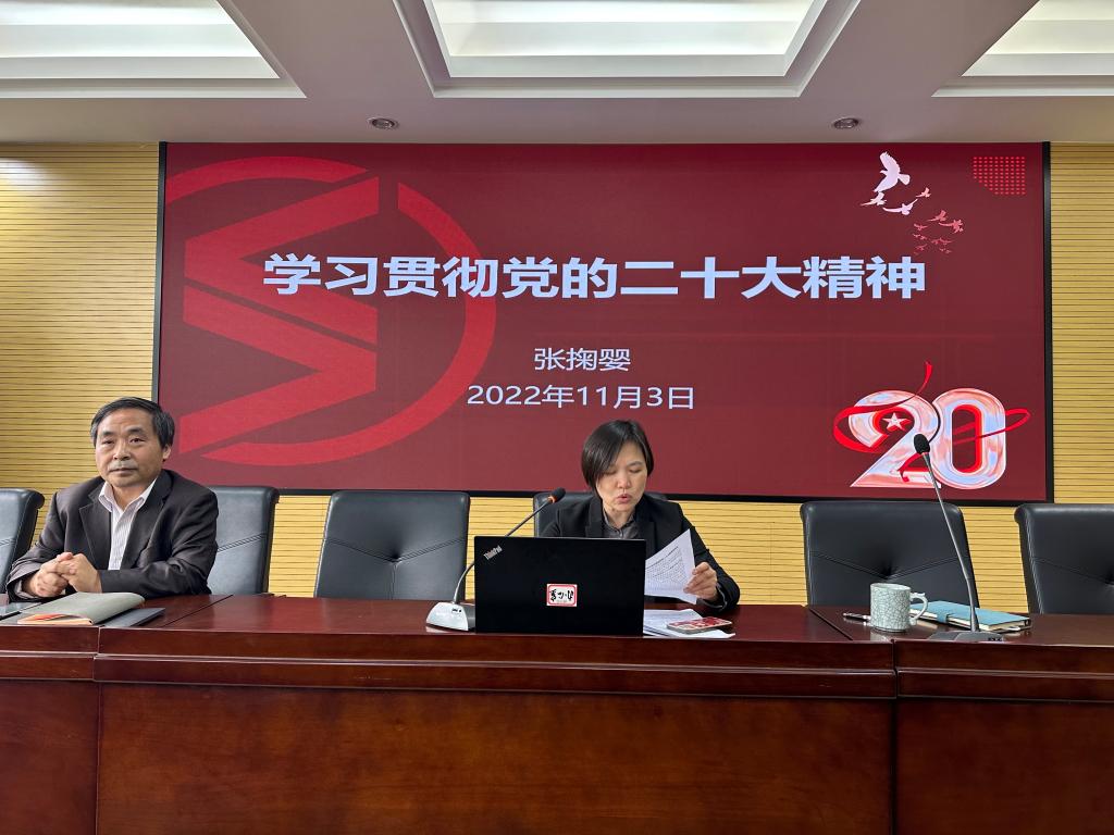 张掬婴指出,要提高政治站位,深刻认识党的二十大胜利召开的重大意义。党的二十大是在全党全国各族人民迈上全面建设社会主义现代化国家新征程、向第二个百年奋斗目标进军的关键时刻召开的一次十分重要的大会。习近平总书记代表第十九届中央委员会所作的报告,回顾总结了过去五年的工作和新时代十年的伟大变革,科学谋划了当前和今后一个时期党和国家事业发展的目标任务,备受鼓舞、催人奋进,报告高屋建瓴、内容丰富、主题鲜明、思想深邃,是我们党团结带领人民全面建设社会主义现代化国家、全面推进中华民族伟大复兴的政治宣言和行动纲领,是马克思主义的纲领性文件。